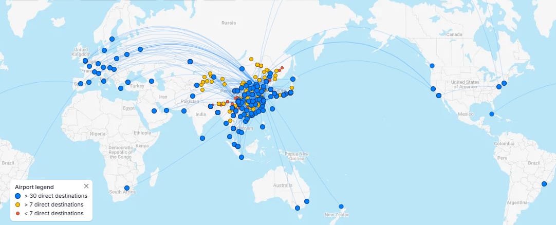 The airline has prioritized expansion along Belt and Road Initiative countries, leveraging diplomatic and economic relationships to secure valuable traffic rights.